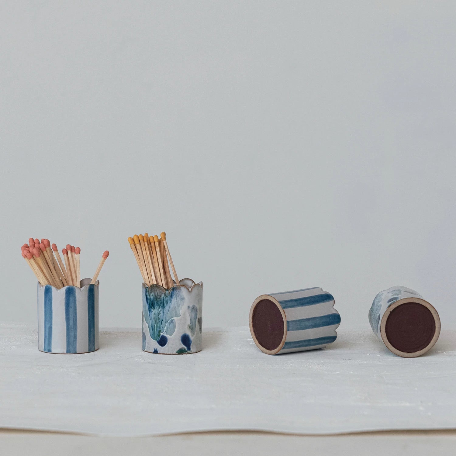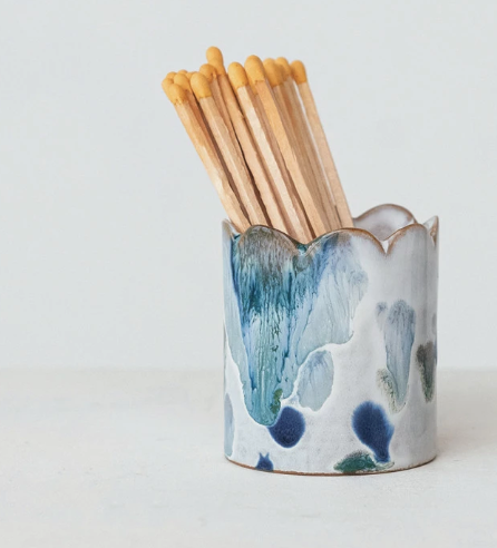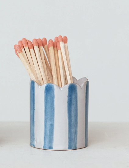 Get your fire started in style with our Scalloped Matchstick Holder w/ Striker! This holder not only adds a touch of elegance with its scalloped design, but also includes a striker for easy lighting. Never struggle with starting a fire again (unless you're using this holder)!
