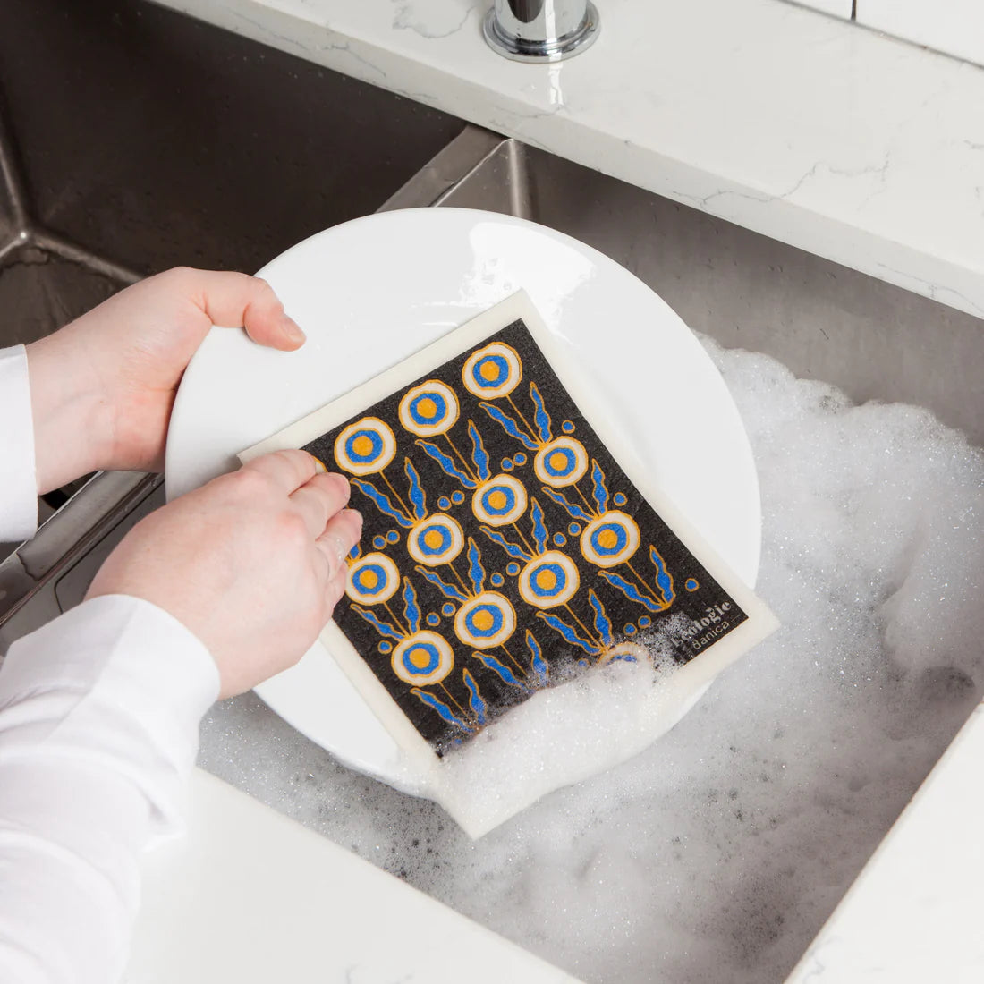 Take an artistic approach to your chores with the modern design on this Still Life Swedish Dishcloth by Ecologie. The bold repeated pattern dresses up the soft cloth, which offers streak-free cleaning and quick spill cleanups with its absorbency.