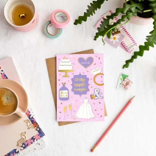 Congratulate the bride and groom with this unique wedding card!