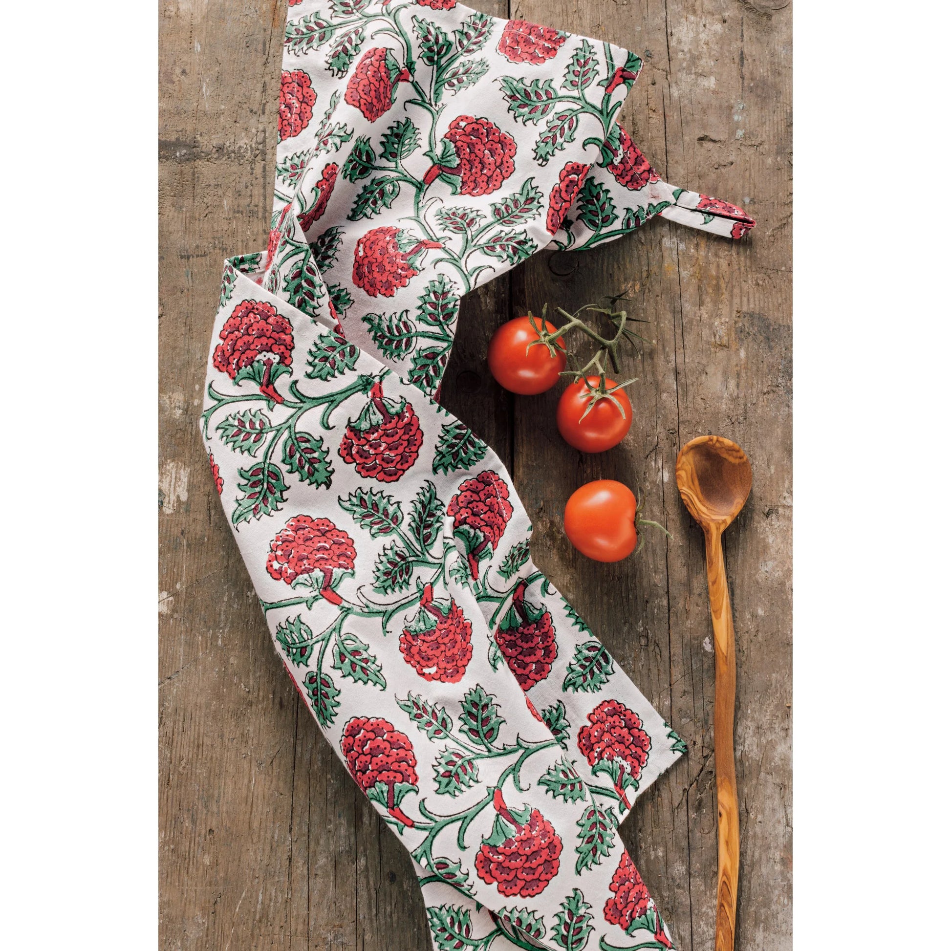 Hand block-printing holds a long and rich history in Indian textiles. It’s a skilled craft, shared generation to generation. Each hand-carved wooden block is stamped in ink and applied with expertise to the fabric creating complex, interconnected patterns. When you wear a hand block-printed apron, the artistry shines through and the beauty can be found in the variations of each print.