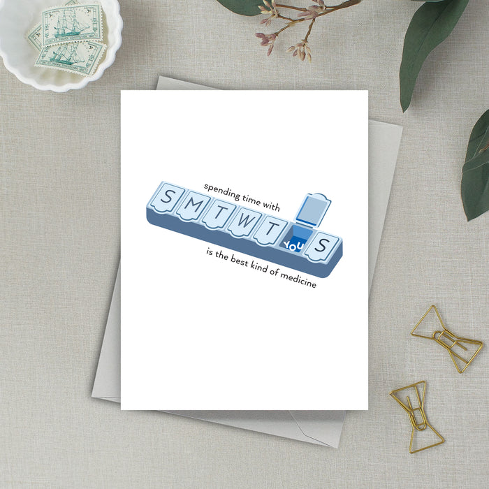 Spread love and laughter with the Best Medicine Card. Send a dose of joy to your loved ones and put a smile on their faces. Because the best medicine is love, and this card has it in abundance.