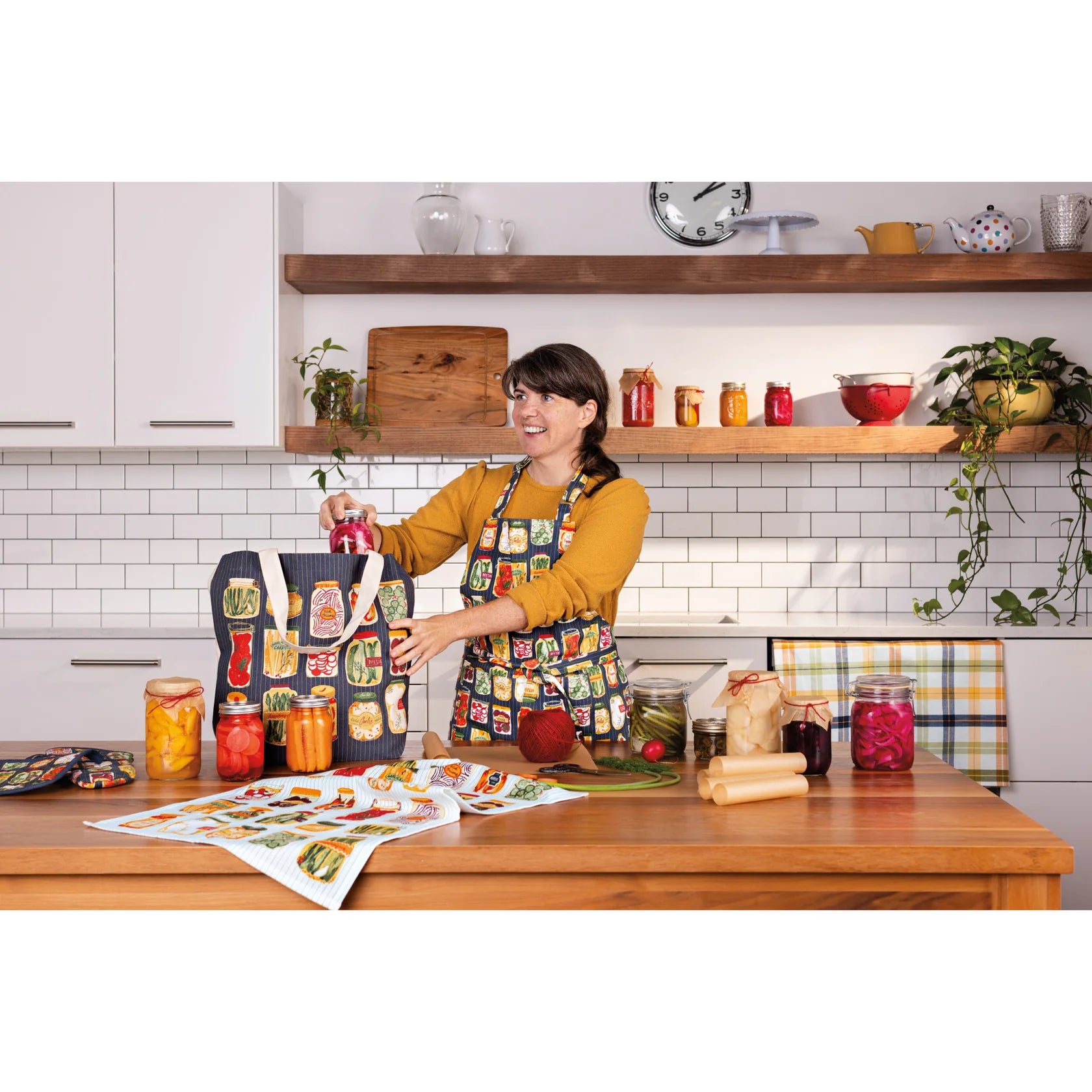 Every kitchen needs a great pair of oven mitts. Made from 100% cotton and lined with silver acrylic coated cotton, each mitt is 13-inches long and measures 6.5-inch from thumb to exterior side. The quilted construction with insulation also helps to protect your hands from the heat.