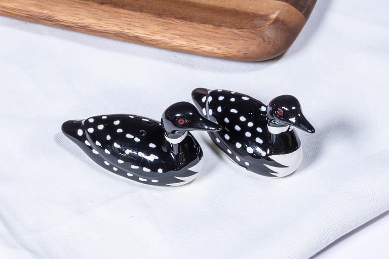 Add some whimsy to your cottage table with Loon Salt and Pepper Shakers. Crafted from ceramic, these beautifully painted shakers are shaped like mini loons, perfect for Canadian wildlife lovers.
