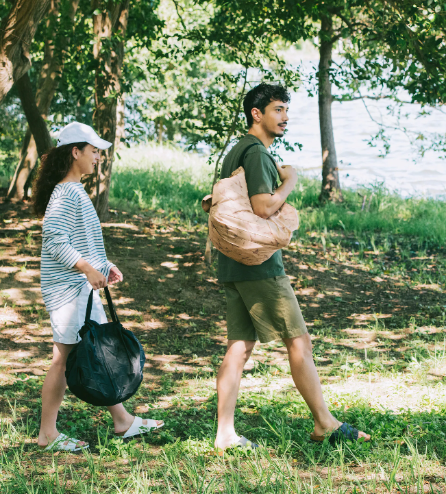 Folds quickly and roughly into a small pouch with a drawstring. Even if the bag is wet or dirty, it won’t affect other items in your bag. -