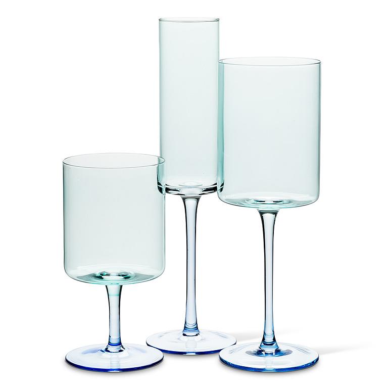 Playful soft blue glass with a tinted short stem. Versatile for any beverage and perfect for adding a pop of color to your table. Pairs with matching wine glasses and flutes!